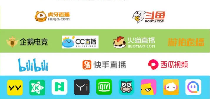 以游戏直播为主要业务主要分为虎牙、斗鱼直播,能力衍生游戏直播平台有,快手、b站bilibili、CC直播、西瓜直播、抖音等。